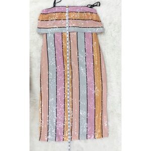GIANNI BINI Halston Multi Color Stripe Sequin Dress Cocktail Midi Size 0 2 New