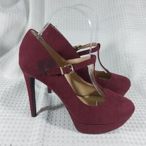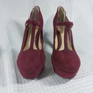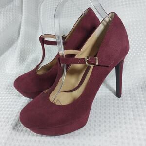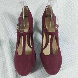 GIANNI BINI! LUXE BURGUNDY VEGAN SUEDE LEATHER T-STRAP PLATFORM HEELS! SZ 8M