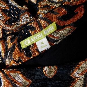 GIANNI BINI Lordice Metallic Brocade Floral Pleated Mini Skirt Festive Party M