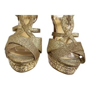 GIANNI BINI “Myra” Platform Champagne Gold Sandals Strappy Stiletto Heel 8.5 EUC