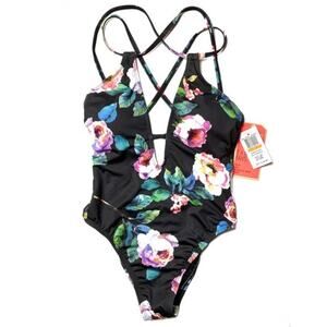 GIANNI BINI NWT Pink Purple Rose Floral One Piece Swimming Suit - Medium