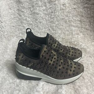 GIANNI BINI NYLON CAMOUFLAGE WEDGE SLIP ON SNEAKERS WITH BLACK SPIKES SZ9