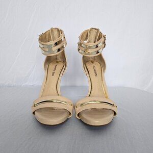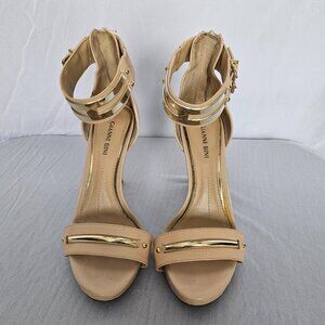 GIANNI BINI Nude / Beige Stiletto Heels with Gold Accents, Sz 6M