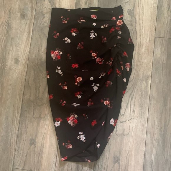 GIANNI BINI RUCHED SIDE SLIT LINED FLORAL SKIRT XS