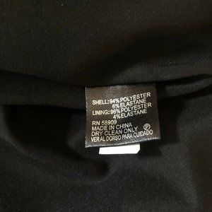 RUCHED ALONG THE SIDE WITH A SLIT. ZIPS IN THE BACK.