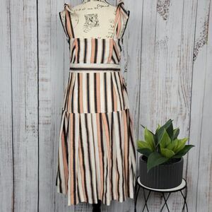 Item: GIANNI BINI Striped Chic Button Tie Straight Neck Fit & Flare Summer Midi Dress. This dress is GORGEOUS!!!!!! Double lined for comfort. Shoulder strap ties are adjustable for a tailored fit. This dress is shabby chic and classy! Hidden zipper under armpit for ease on and off. High quality. Keyhole cutout on chest.