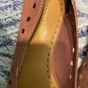 VERY CUTE GIANNI BINI SUED BALLET FLATS with cut outs and bow, pink, pale blush, size 9M Pre-own,In good condition