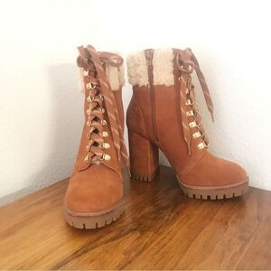 GIANNI BINI Suede Lug Sole Platform Hiking Bootie Lace Up Brown Size 6 New