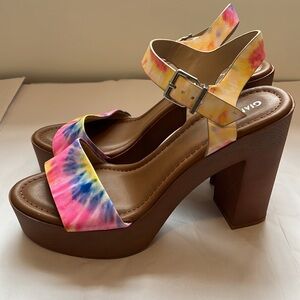 GIANNI BINI Tie Dye Platform Palmeera Sandal Heels 10