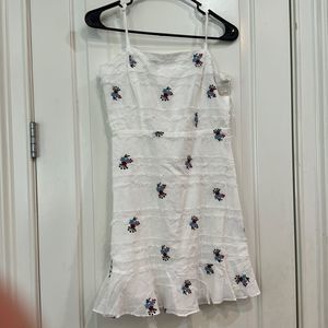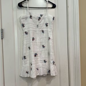 GIANNI BINI, WHITE COTTON MINI DRESS FLORAL EMBROIDERY, SZ S. Fantastic condition. No stains pilling etc