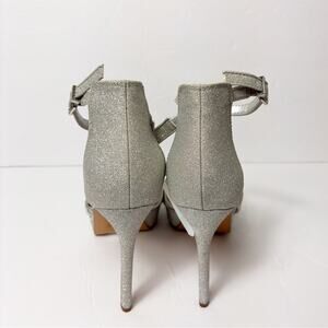 GIANNI BINI WOMEN'S 10 GLITTER SILVER ANKLE STRAPPY HEELS NEW STICKER TAGS