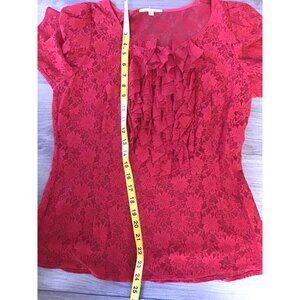 GIANNI BINI -WOMENS FRONT RUFFLE SHORT SLEEVE RED LACE WOMEN'S TOP SIZE LARGE