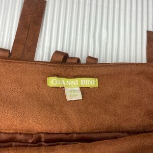 GIANNI BINI - WOMEN'S TAN BROWN SOFT FAUX SUEDE FRINGE PENCIL SKIRT - XS