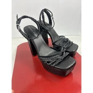 GIANNI BINI Women 9 Black Strappy Open Toe Platform High Heel Sandal Chunky Goth