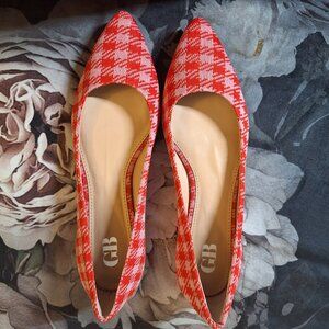 GIANNI BINI Women's Pink & Red Houndstooth Plaid Flats Size 8 1/2