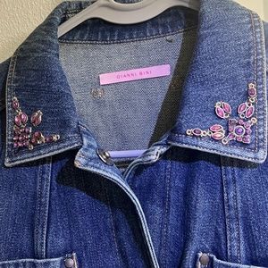 Blue Jean Jacket with faux stones. Size large . Arm inseam is approx. 18".