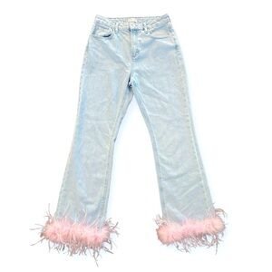 GIANNI BINI x Nastia Liukin Straight Leg Pink Feather Hem Jeans Size 28 NEW