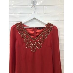 Gianni Bini valentine long sleeve embellished dress. It has really cute unique details all around the neck to the back as well as in the sleeve hems