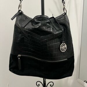 GIANNI CONTI Black Crocodile-Embossed Hobo Bag
