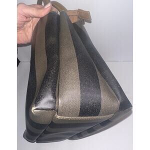 Crafted with the iconic striped design and accented by gold-tone hardware, this square-shaped mini tote exudes understated elegance. Its matte finish and structured silhouette make it an ideal companion for both daytime outings and evening occasions. The interior features a brown fabric lining, offering a refined contrast and plenty of space for your daily essentials despite its compact form.