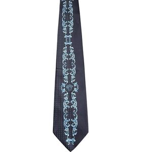 GIANNI VERSACE 90s Vintage Blue Monochromatic Medusa Silk Tie Made in Italy. Men's Rare VERSACE classic neck tie featuring a pointed tip, an adjustable fit and printed Medusa head center print motif.