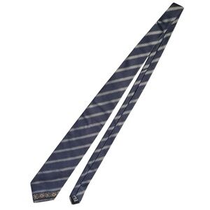Pre-Death GIANNI VERSACE 90s Vintage Metallic Baroque Silk Stripe Tie Made in Italy. Made in Italy. Blue stripe allover pattern with gold ornate detail towards point. Men's Rare VERSACE classic neck tie featuring a pointed tip and adjustable fit.