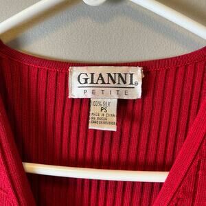 GIANNI Women’s Vintage Button Up Cardigan Red 100% Silk Small Petite