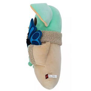 Grogu plush clutches an attached soft blue butterfly inspired by a force-ful scene in the second season!