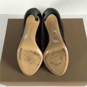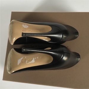 Crafted from soft black calf,a slim heel it will give a rock chic look. To any outfit. Low cut vamp curved top lime, smooth leather. A sleek open toe and high stiletto heel. Sole; leather 100% Lining leather 100%