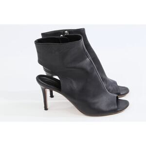 GIANVITO ROSSI Black Leather Peep Toe Cut Out Ankle Booties Size 39.5