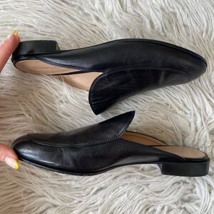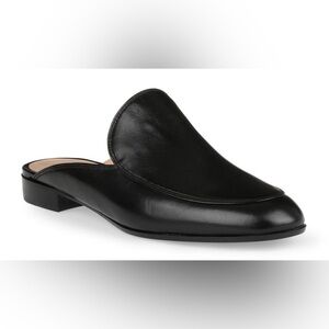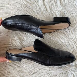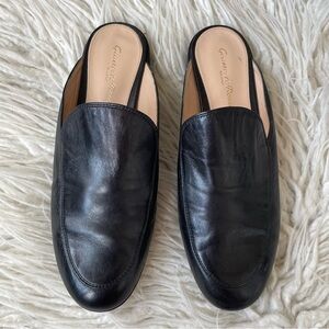 Black leather slide loafer from Gianvito Rossi. The Palau has a small (.75”) heel, a slip-in design, and a leather sole.