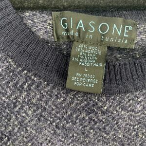 GIASONE Men's Vintage Navy Blue Wool Silk Angora Blend Crewneck Sweater Size L