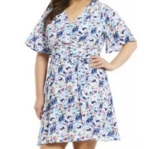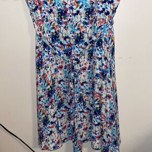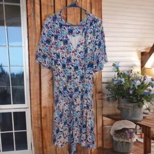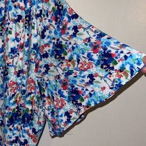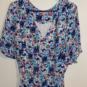 🌹GIBSON LATIMER BLUE FLORAL V NECK RAYON DRESS