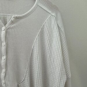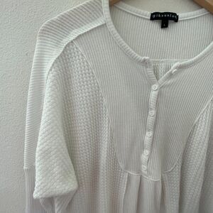Gibsonlook Mixed Rib Waffle Knit Henley Top, Size large