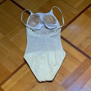 GIDEON OBERSON unique bathing suit. Netting with diamond shape stitched on. Lining only in bra and bottom area. ( pads sewn in bra area; stitching can be taken out and pads removed)