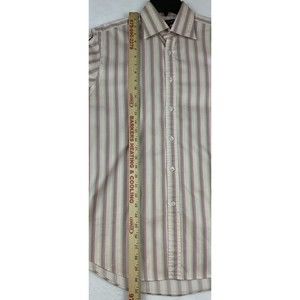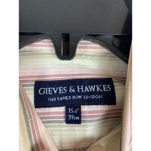 GIEVES AND HAWKES Shirt Mens 15.5” 39cm Button Up Dress Tan Pink Striped