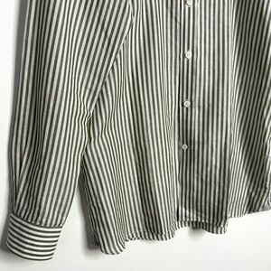 - Keywords: long sleeves, button down shirt, green and white striped, lightweight