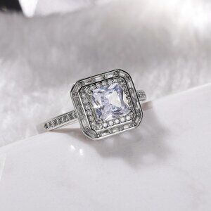 Luxury Engagement Clear Gem CZ Large Square Noble Thin Wedding Ring, K864