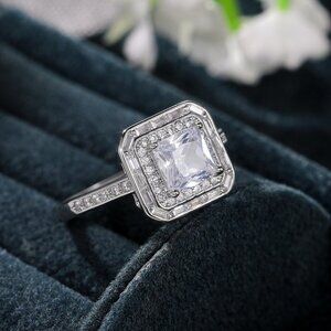 Luxury Engagement Clear Gem CZ Large Square Noble Thin Wedding Ring, K864