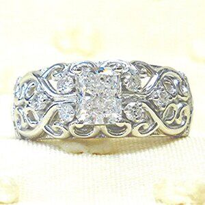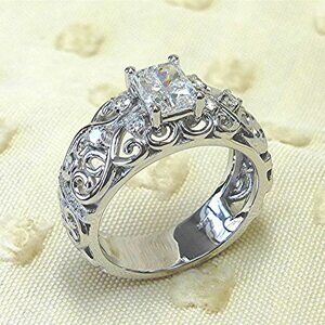 Dainty Radiant Cut Hollow Carved Silver Trendy Vintage Eternity Ring for Women, K997