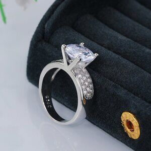 Anillos Large Round CZ Luxury Diamond Chunky 925 Silver Ring, L018