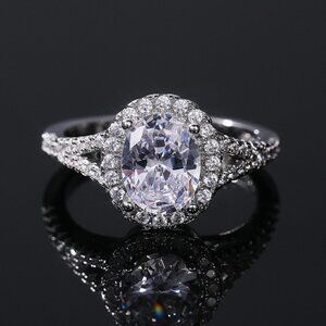Beautiful Anillos Oval Crystal Zircon Silver Classic Wedding Ring for Women, L109