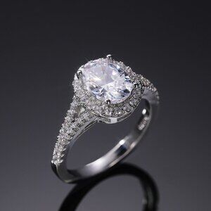 Beautiful Anillos Oval Crystal Zircon Silver Classic Wedding Ring for Women, L109
