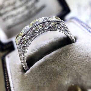 Noble Pattern Cubic Zircon Party Silver Vintage Eternity Ring, L179