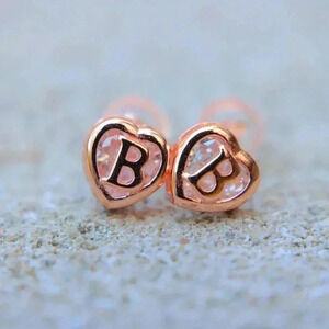 GIFT 💝HEART INITIAL ROSE GOLD EARRINGS WOMEN TEEN GIRLS MOM DAUGHTER, ELDM153RG