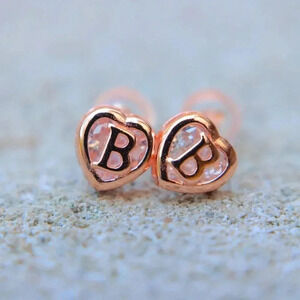 GIFT 💝HEART INITIAL ROSE GOLD EARRINGS WOMEN TEEN GIRLS MOM DAUGHTER, ELDM153RG
