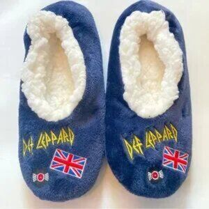 DEF LEPPARD 2018 British Flag Vinyl Record Soft Fuzzy Slip On Slippers Size 7