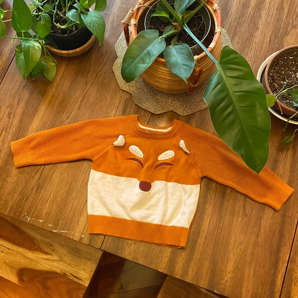 Adorable unisex Cat & Jack pull over knit sweater featuring a cute fox face. Worn a couple times, in excellent condition.