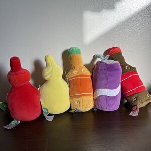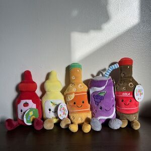 GIGGLE SCAPE Lot Of 5 Food Plush Soda Ketchup Vanilla Grape Soda Cola- BRAND NEW
