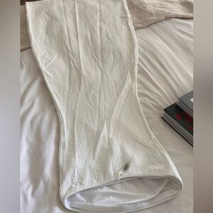 Sophisticated strapless design. Textured fabric. Ideal for elegant events.